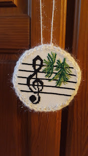 Šogad es rūķoju Kamēliju. Viņas ikdiena saistīta ar mūziku, tādēļ izvēlējos muzikālu svētku sveicienu. Izšuvums izrādījās izaicinošāks nekā izskatījās, jo jāizmanto neierasta tehnika. Noformējumam veiksmīgi atradu krājumos pūkainu mirdzošu un vienkārši pūkainu baltu dziju, kopā to tonis saskanēja ar audumu un tamborētais aplītis mīksti apkļāva izšūto.