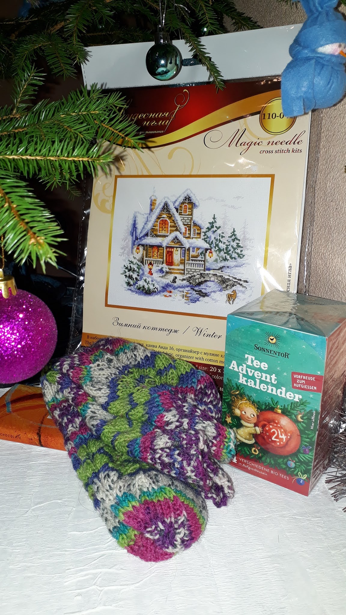 Savukārt man jau otro gadu pēc kārtas dāvanu sarūpējusi Papele. Šogad tās ir siltas zeķes, klāt saldums, tēju adventes kalendārs un sniegots izšūšanas komplekts.